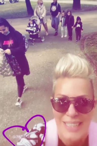 Сестрите Тијана Дапчевиќ и Тамара Тодевска вчера биле на прошетка во Градскиот парк во Скопје со нивната мајка Брана, и со децата на Тамара, Хана и Дарин.