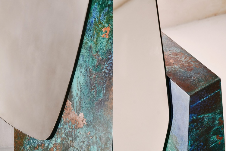 Ова подно огледало, на пример, со својата форма создава речиси магична илузија како да го гледате брегот на езерото од висина. Покрај неправилниот облик на огледалото, кое асоцира на вода и брег на езеро, има и основа, односно цврст блок со остри рабови и добро изразена форма. Тоа е во контраст со течната форма на огледалото и изгледа како огледалото едноставно да сече дел од основата. Многу крајбрежја изгледаат вака кога се гледаат одозгора, и тоа е потсетник дека водата може да биде и деструктивна сила, дури и кога полека ги еродира карпите и почвата со текот на времето.