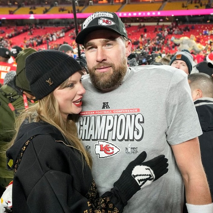 Фановите се убедени дека нејзиниот избор на оваа боја е очигледен знак на поддршка за Келце, која игра за Канзас Сити Чифс, а црвената боја е нивниот заштитен знак. Сепак, тоа не е единствената порака која ѕвездата наводно му ја испратила на своето момче. Низ ногата ѝ висело синџирче со приврзок во форма на буквата „Т“.
