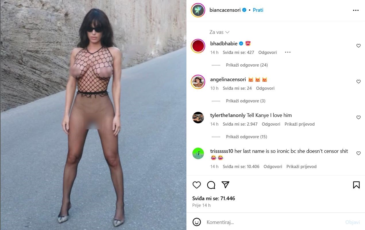 „Те пријавувам поради голотија“, „Канје не ја присилува, сето ова е нејзина идеја“, „Не разбирам како воопшто ти е дозволено да објавуваш вакво нешто на Инстаграм“, „Зошто го правиш ова? За внимание? Не мислам дека ти треба“, „Сфаќаме, цело време си гола“, „Жено, облечи се“, се само дел од коментарите.