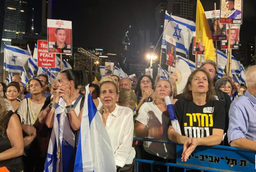 Но, и други групи повеќепати протестираа против војната: арапски Израелци, воени ветерани и членови на семејствата на воениот персонал. Генерално, според анкетата од јули 2025 година, повеќе од 70% од Израелците поддржуваат прекин на огнот. Но, општеството е длабоко поделено, а таборите за и против воената акција во Газа во последно време стануваат сè понепомирливи.