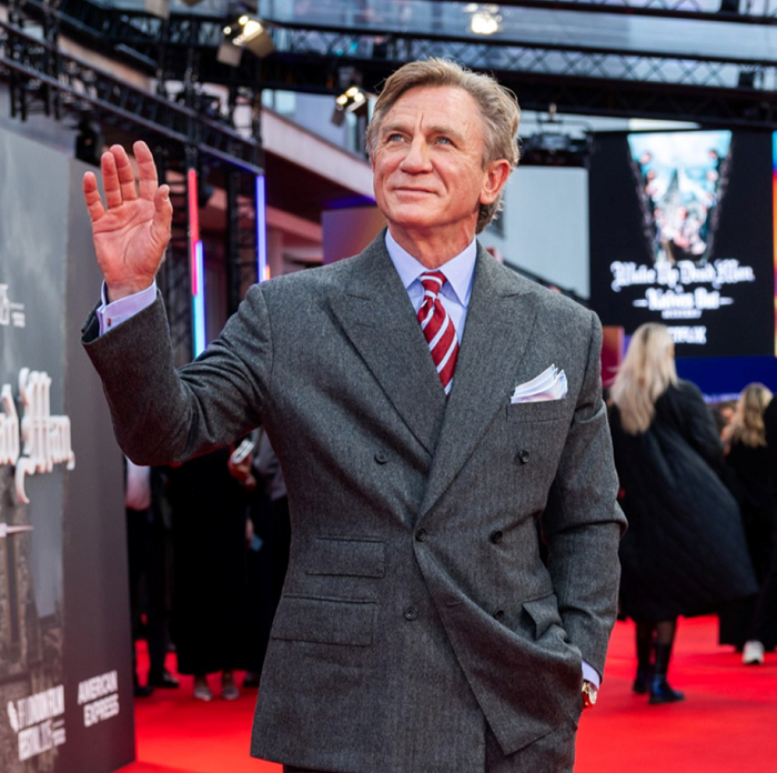 57-годишниот актер, познат по улогата на Џејмс Бонд, од 2019 година го толкува ликот на детективот Беноа Блан, а сега се враќа во третото продолжение на популарната франшиза. На црвениот тепих пред „Royal Festival Hall“, каде што филмот го отвори „BFI London Film Festival“, Даниел изненадил со нов изглед – седaта, бушава коса со повеќе волумен ја заменила неговата препознатлива залижана фризура.