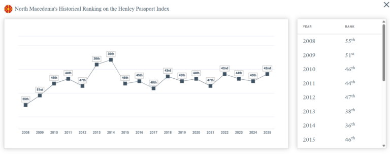 Македонија е рангирана на 42. позиција со можност за влез без виза во 129 држави.