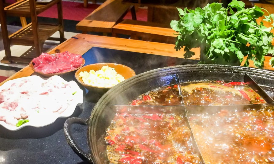 Градот е дом на познатиот хот-пот (топол лонец) во кој се готват разни видови месо и зеленчук во зачинет бујон со огромни количини чили пиперки и сечуански пипер. Ова гастрономско искуство не е за оние со слаб стомак, но е неизбежен дел од локалната култура.