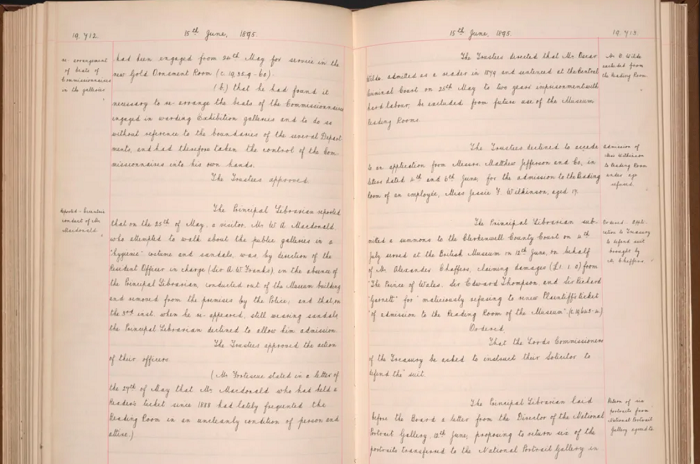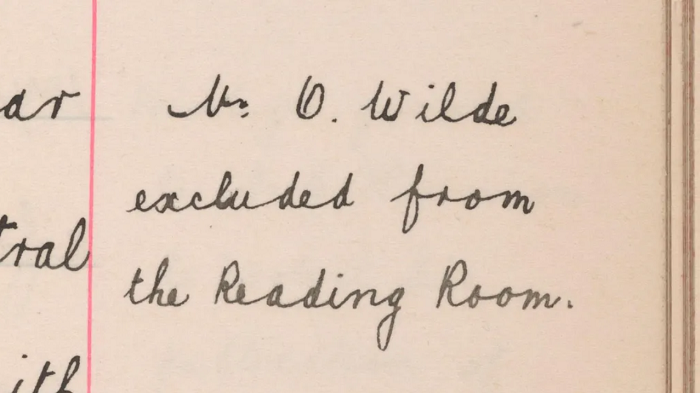 Во документите на Британската библиотека од јуни 1895 година стои рачна забелешка: „Г-дин О. Вајлд е исклучен од читалната“. Одлуката за поништување на пристапната картичка на Вајлд, тогаш за читалната на Британскиот музеј, била заведена без коментар во записниците на доверителите на 15 јуни 1895 година.
