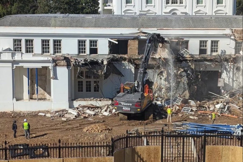 Градежните работници почнаа да уриваат дел од Источното крило на Белата куќа со багер. Претседателот на САД, Доналд Трамп, одлучи да сруши дел од Белата куќа и да ја реновира балската сала. Инвестицијата е вредна 250 милиони долари.