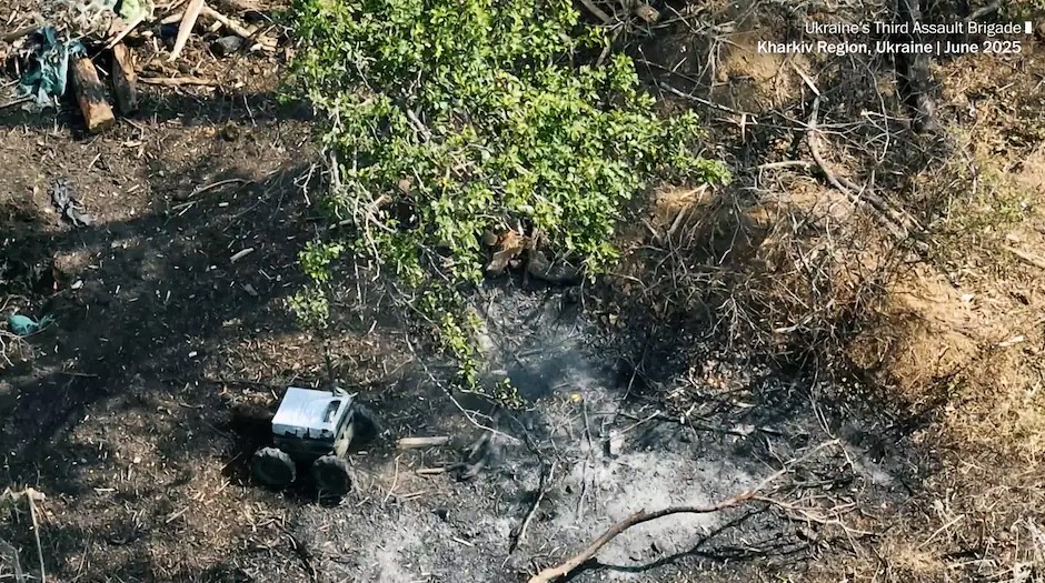 Предавањето на руските војници на далечински управуван копнено беспилотен летало на североисточниот фронт во јуни беше прв пат Украина да употреби таков уред за заробување непријателски војници, според командантите на Третата јуришна бригада. „Вашингтон пост“ ја реконструирал јунската операција со анализа на снимки обезбедени од бригадата и интервјуа со команданти вклучени во нападот.