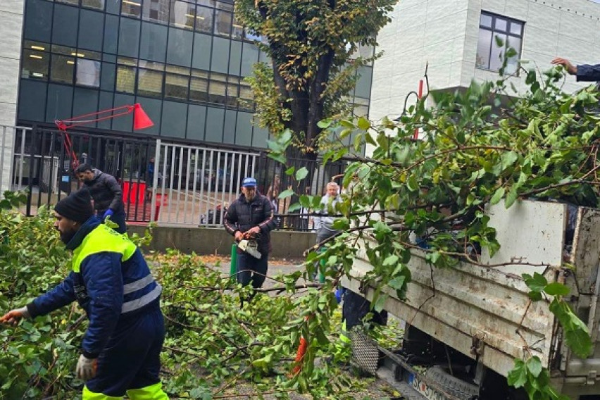Општина Центар информира дека во моментов екипите на ЈП „Паркинзи на Општина Центар“ и ЈП „Паркови и зеленило“ работат на отстранување на двете паднати дрвја во близина на ООУ „Киро Глигоров“.