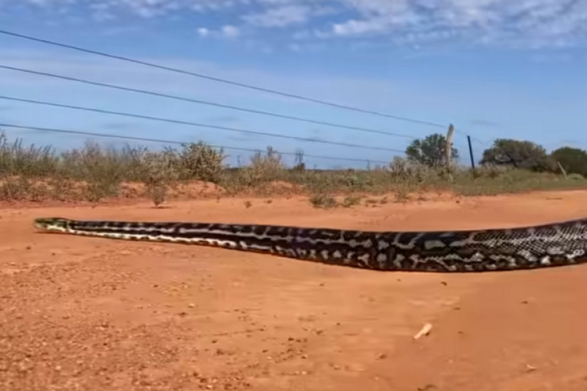 Тали Мојл, специјалистка за враќање на дивите видови во нивните природни живеалишта, го посетила Националниот парк „Gawler Ranges“ кон крајот на септември и таму се соочила лице в лице со т.н. шарен питон („Morelia imbricata“) — објави Службата за национални паркови и диви животни на Јужна Австралија на својата страница на „Facebook“.