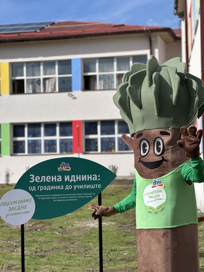 dm drogerie markt ја започна реализацијата на проектот „Зелена иднина: од градинка до училиште“ со пошумување и раззеленување на дворовите на две основни училишта од земјава. ООУ „Стив Наумов“ од Битола и ООУ „Његош“ – Јурумлери во општина Гази Баба во Скопје добија донација наменета за набавка на садници во вкупен износ од 262.100 денари.
