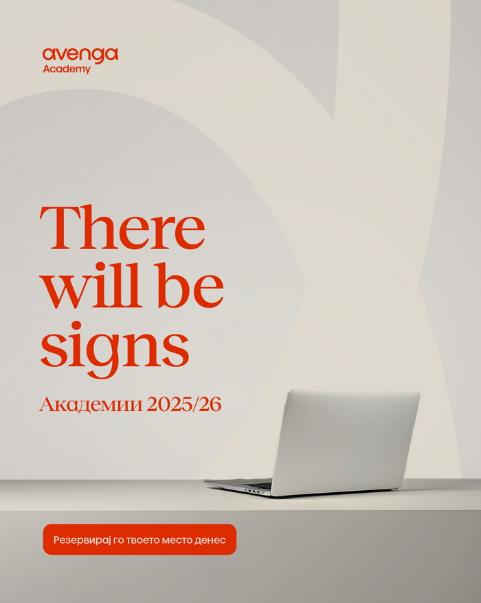Под мотото „When I complete Avenga Academy, I won’t tell, but there will be signs“, Академијата „Авенга“ ја лансира својата нова кампања посветена на студентите кои преку труд, знаење и истрајност ги градат своите кариери – без големи зборови, но со видливи резултати. Токму врз максимата „Делата зборуваат посилно од зборовите“ се потпираат новите комуникациски активности на едукативниот центар специјализиран во сферата на бизнисот и ИТ индустријата.
