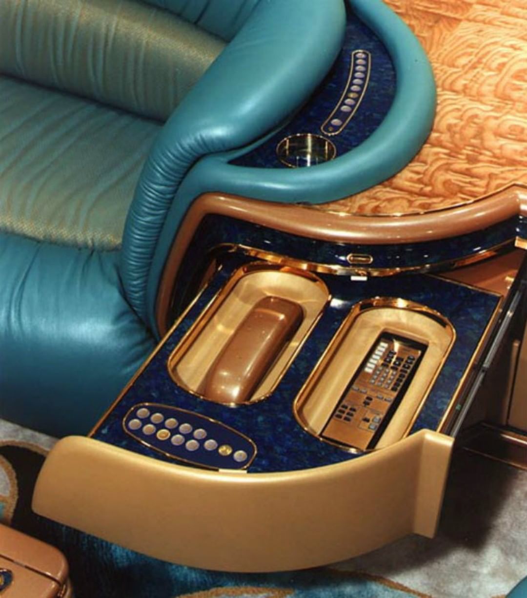 Многу луѓе го нарекуваат авионот „летечка палата“, и тоа не е без причина. Кабината е украсена со позлатени детали, тоалетите наводно имаат мијалници изработени од вистинско злато, ѕидовите имаат специјални кристални и дрвени интарзии, а дневниот престој и просторот за состаноци изгледаат како да се подигнати во воздух директно од луксузна палата.
