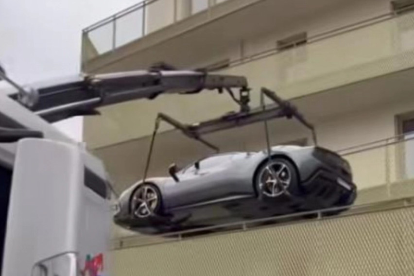 Во петокот околу пладне пристигнало специјализирано возило за отстранување, а спортскиот автомобил внимателно бил спуштен од терасата. Работите траеле околу половина час, а работниците морале да изведуваат милиметарски прецизни маневри за да спречат оштетување на скапоцената машина.