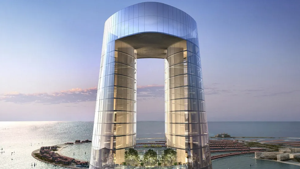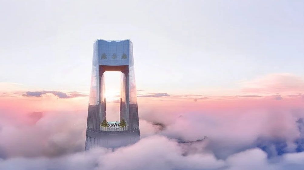 Но, од воздух новиот највисок хотел на светот и тоа како е впечатлив: зградата има голем отвор за да им одолее на моќните ветрови, односно да ги „пропушти“ низ преминот.
