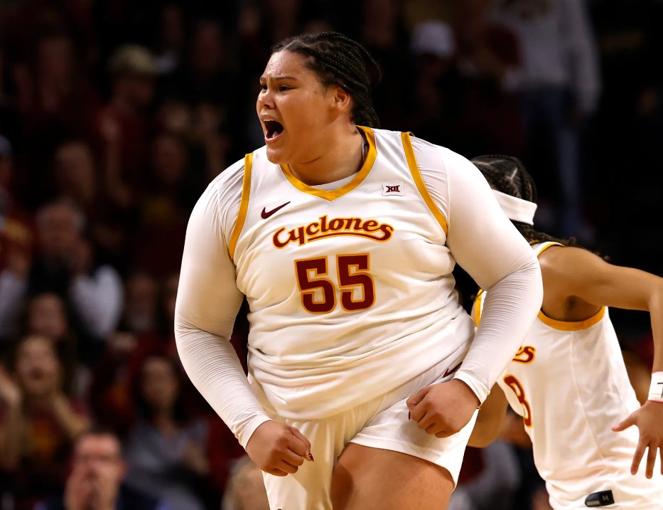 Кошаркарката висока 191 см, со тежина од околу 130 килограми, ја продолжила својата серија од три последователни натпревари со 30 поени, соборувајќи го рекордот на колеџот Ајова Стејт.
