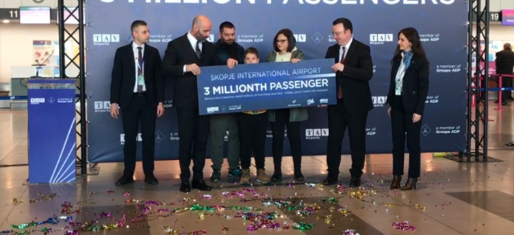 TАВ Македонија, подружница на ТАВ Аеродроми и членка на АДП Групацијата, денес го прослави 3 милионитиот патник во една година на Меѓународниот Аеродром Скопје.
