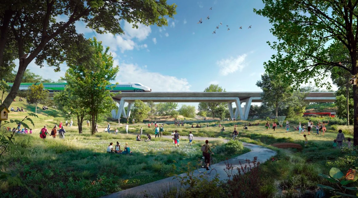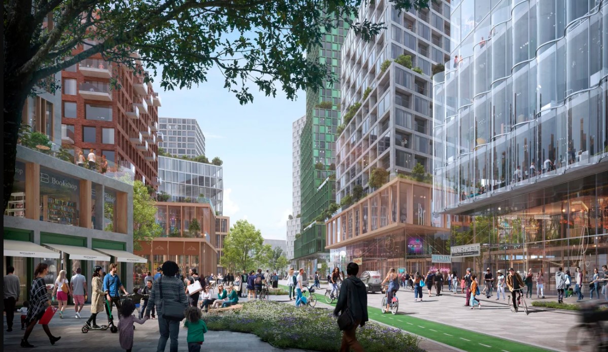 Областа е веќе окружена со мрежа од железнички станици и подземна железница па ќе поттикнува пешачење и алтернативи без автомобил. Ќе има широки велосипедски патеки и автобуски систем.