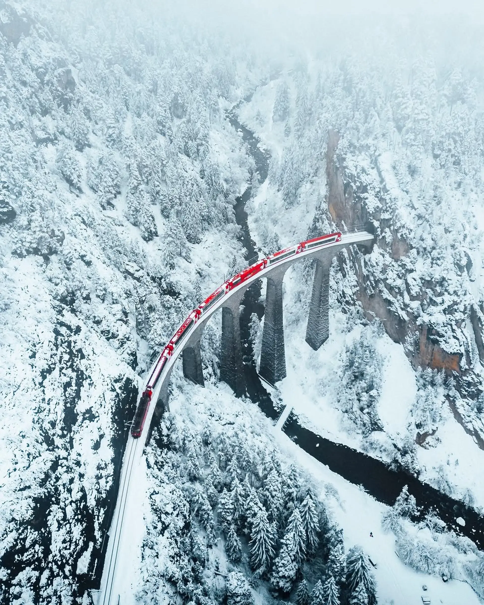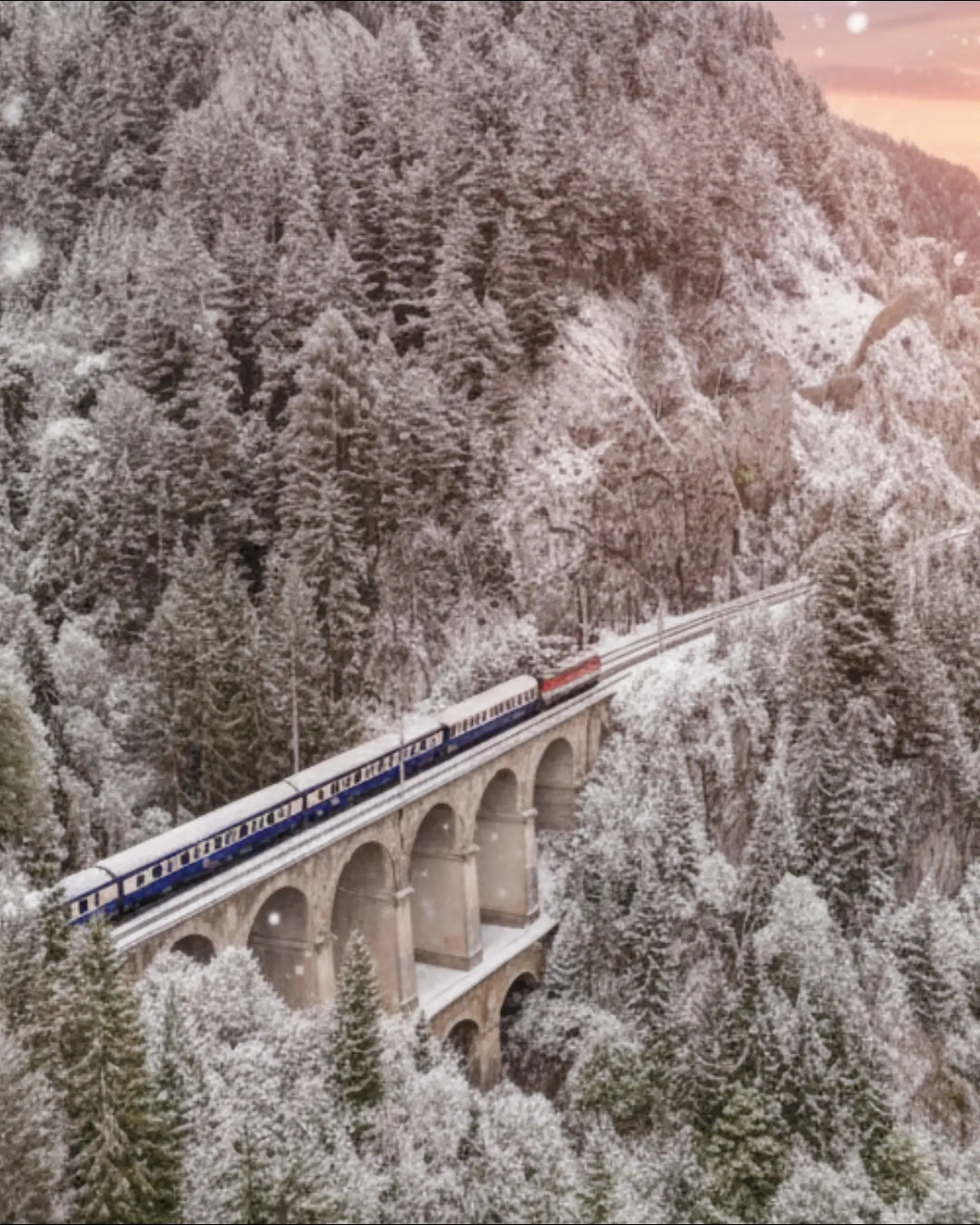 Рутата на „Glacier Express“ е една од најпознатите железнички линии во Швајцарија и уште еден силен кандидат за божиќно патување.