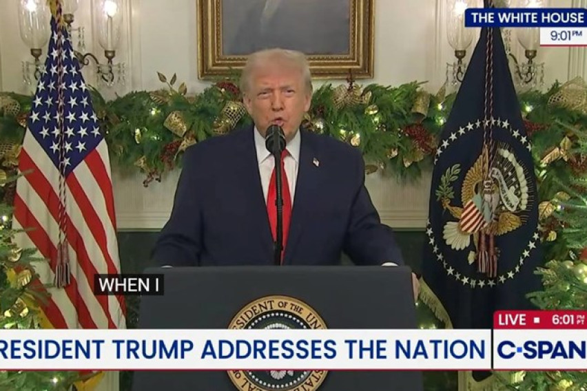 Со камин во заднина и Белата куќа украсена со божиќни мотиви, американскиот претседател Доналд Трамп им се обрати на Американците во живо, а во својот 20-минутен говор најмногу ја нападна поранешната власт и неговиот претходник Џо Бајден.