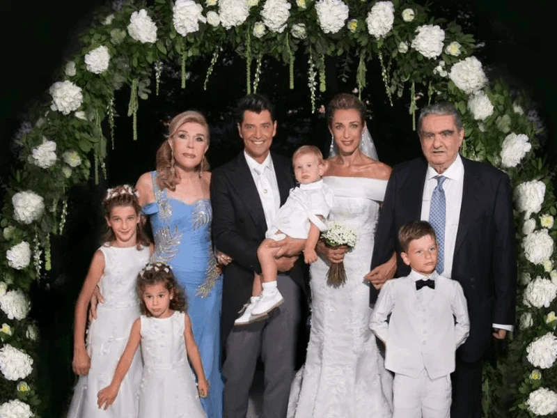 Свадбата била токму онаква каква што отсекогаш сакале – интимна и во кругот на семејството. Посебна симболика имало тоа што сите нивни деца учествувале во церемонијата: Сакис прв пристигнал во црквата со децата, носејќи го најмалиот син Аполон во рацете, додека останатите биле дел од свадбената поворка.