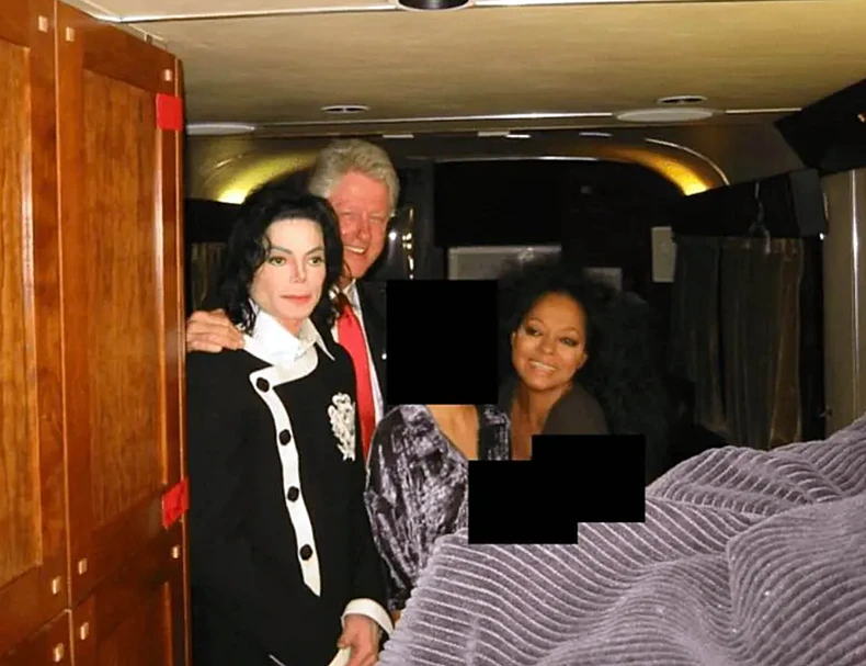 На една фотографија Епстин позира со Џексон, додека на друга пејачот на групата „Rolling Stones“, Мик Џегер, е во друштво на Бил Клинтон. Актерот Крис Такер е снимен како седи до Клинтон на маса, но и на пистата на аеродром во друштво на Гислејн Максвел.