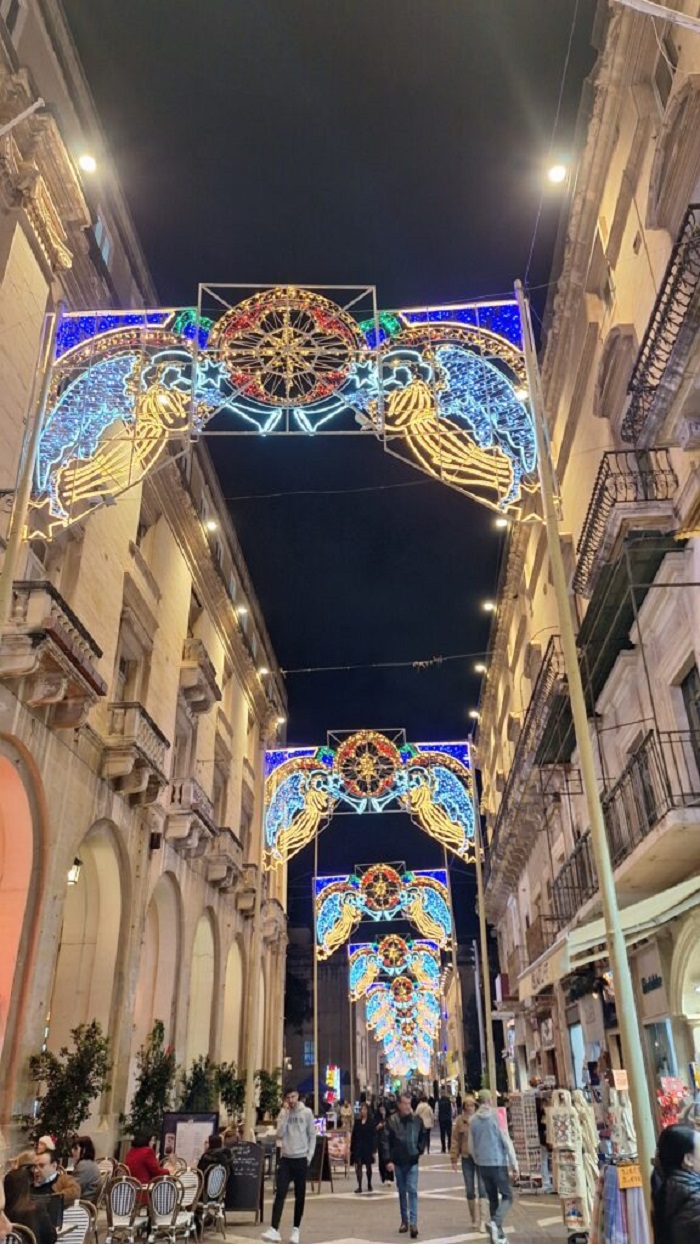 Малта можеби нема зима која би ѝ донела романтични снегулки и веројатно со никаква декорација не би можела да се спореди со Австрија или Франција, но од она што го има – прави журка и слави по свој стил, со многу бои, многу блескави форми, украсени палми и мандаринови дрвца.“