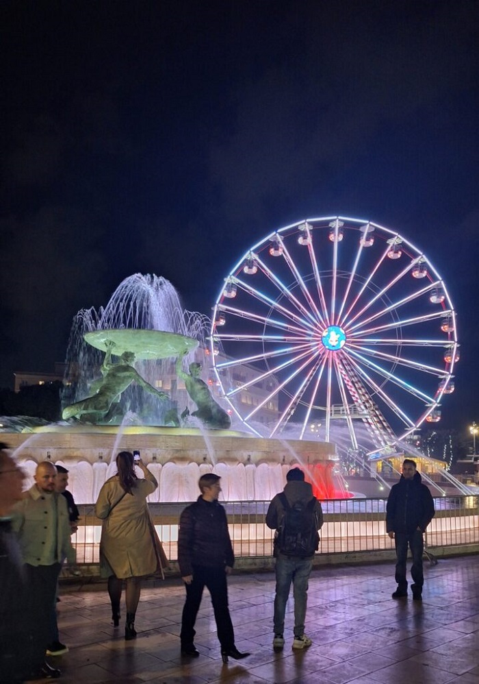 „Така, пред градските врати на Валета, кај познатата фонтанa на Тритон, е поставен голем празничен саем со големо панорамско тркало и рингишпил, тезги со локални специјалитети, ракотворби и блескави украси во различни форми (кои веројатно служат само за фотографирање), а во близина е затворено лизгалиште и забавен парк.