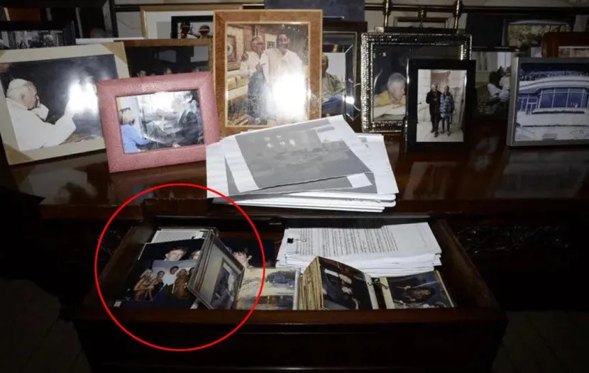 На таа фотографија, во една фиока можат да се видат покрај другите фотографии и фотографија од Доналд Трамп, заедно со педофилот, Меланија Трамп и долгогодишната соработничка на Епстин, Гислен Максвел.