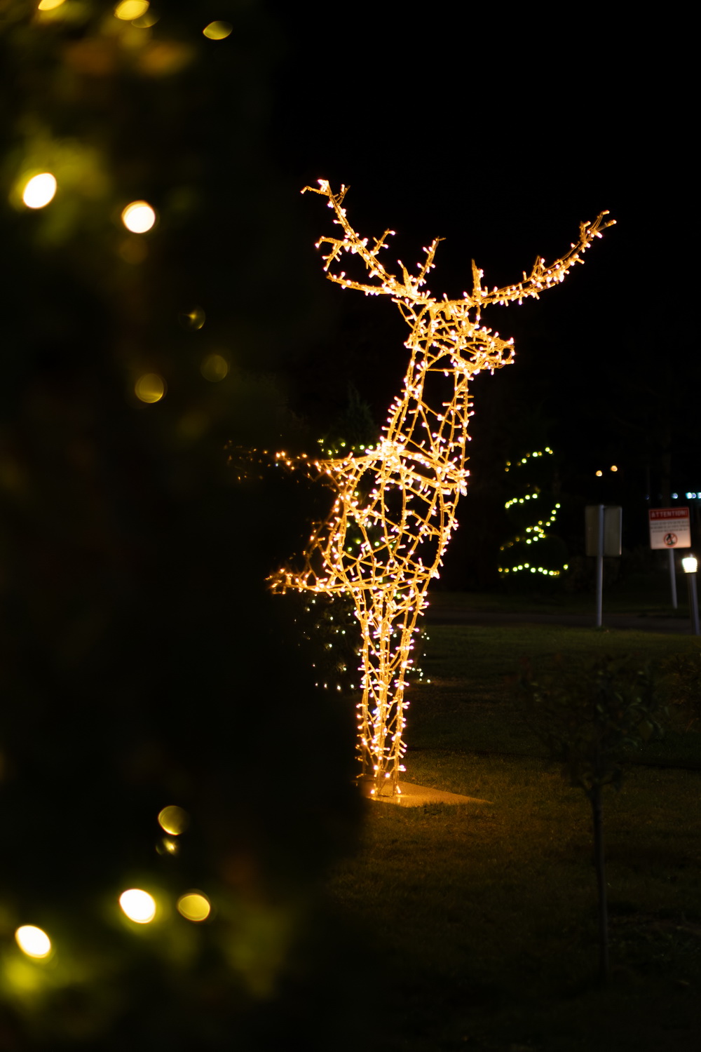 Централниот акцент на целото украсување е импозантниот светлечки ирвас, изработен во топло жолта боја, со висина од 3,1 метар. Оваа декоративна инсталација доминира во просторот и претставува вистинска визуелна атракција, која веднаш го привлекува вниманието и создава препознатлива празнична сцена. Ирвасот е дополнет со светлечки декоративни топки, кои дополнително го збогатуваат амбиентот и ја заокружуваат новогодишната приказна.