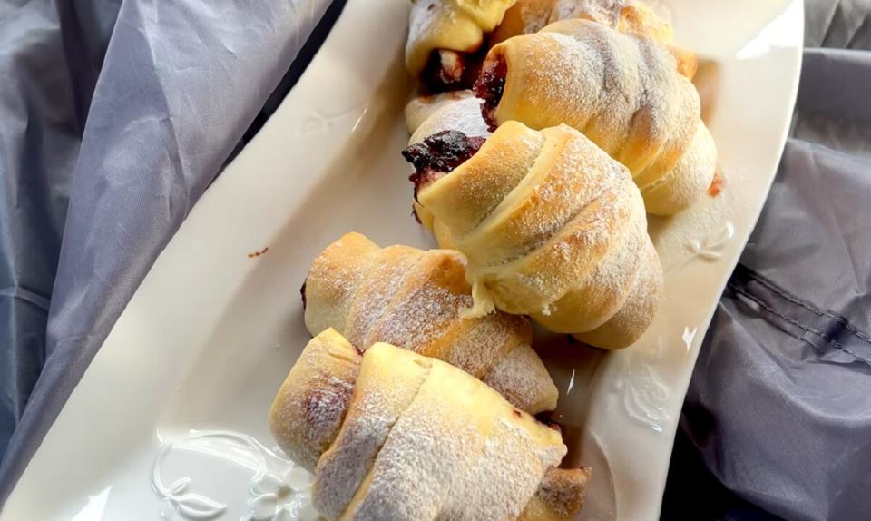 Завиткајте ги во кифлички и печете на 180°C околу 15 – 20 минути, додека да добијат златна боја.