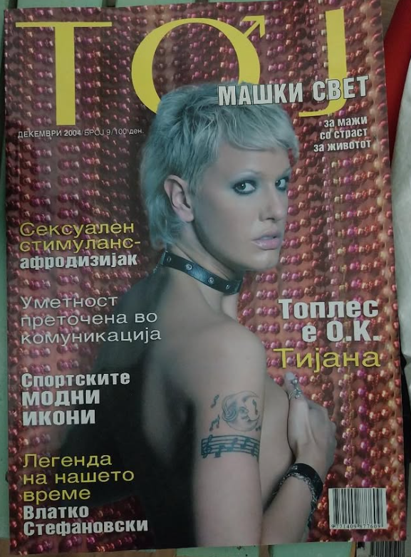 „Легендарната Тијана Дапчевиќ во 2004 година во списанието „ТОЈ машки свет“. Првиот број на „ТОЈ машки свет“ излезе во април 2004 година. „ТОЈ“ е прво специјализирано списание за мажи во Македонија.