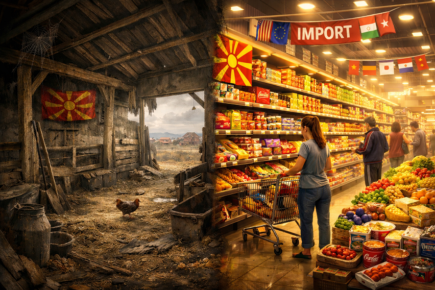 Економските аналитичари предупредуваат дека оваа појава не е случајна. Кога домашниот производител е притиснат од високи влезни трошоци и несигурен откуп, просторот го пополнува увозната стока.