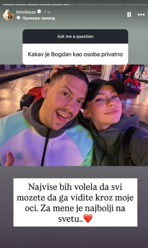 Јутјуберот Богдан Илиќ, попознат како Бака Прасе, веќе некое време ужива во љубовта со Милена Стаменковиќ, која е многу популарна на социјалните мрежи. Таа сега ги откри непознатите детали од нивната љубов.