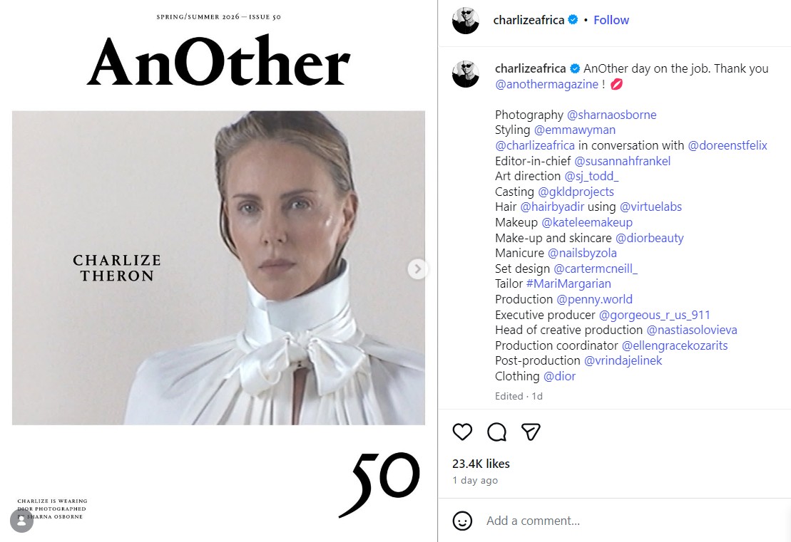 Во интервју за магазинот „AnOther“, објавено на 19 февруари, Шарлиз Терон, која денес има 50 години, раскажала дека во текот на кариерата се соочувала со ситуации на снимања и со одредени режисери „кои денес едноставно не би можеле да поминат неказнето“.