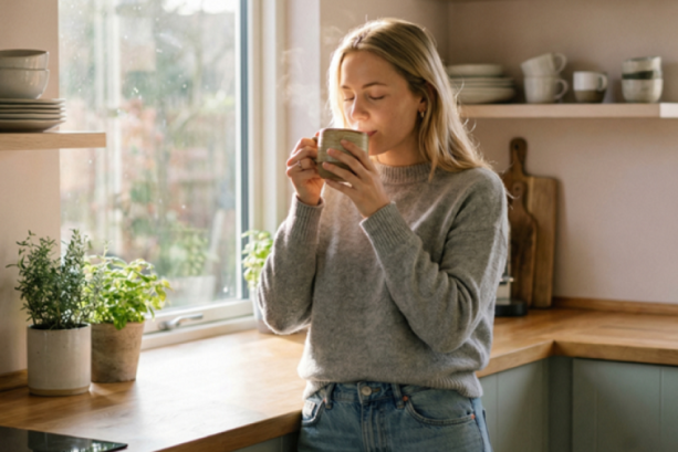 „Ја сакам својата утринска рутина – ме подготвува за одличен ден!“, напишала таа во описот на видеото.