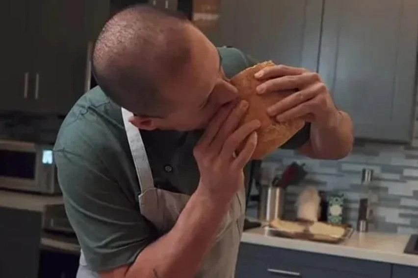 Чичарито изгледаше воодушевен од резултатите од својата работа кога го пресече сендвичот на половина и го покажа пресекот, а воодушевена беше и госпоѓата зад камерата, за која се претпоставува дека му е сопруга.