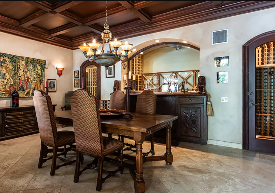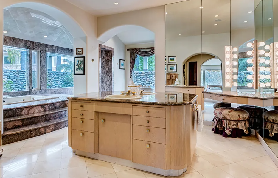 Куќата вклучува мермерни бањи, пространи гардероби и луксузна кујна со голем остров, но и дополнителни содржини како што се канцеларија, студио, соба за медитација, салон за вино и пури, како и теретана.