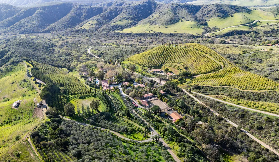 Имотот се протега на 1.225 хектари во Калифорнија и располага со приватна зоолошка градина со зебри, антилопи и желки. Фармата има повеќе од 20.000 лимонови дрвја, 1.000 маслинови дрвја и органски цитрусни овошја.