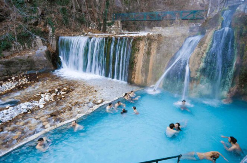 Ако ја следите патеката од центарот на Александрио, ќе наидете на отворен термален базен со водопад, каде што пливањето чини само 3 евра.