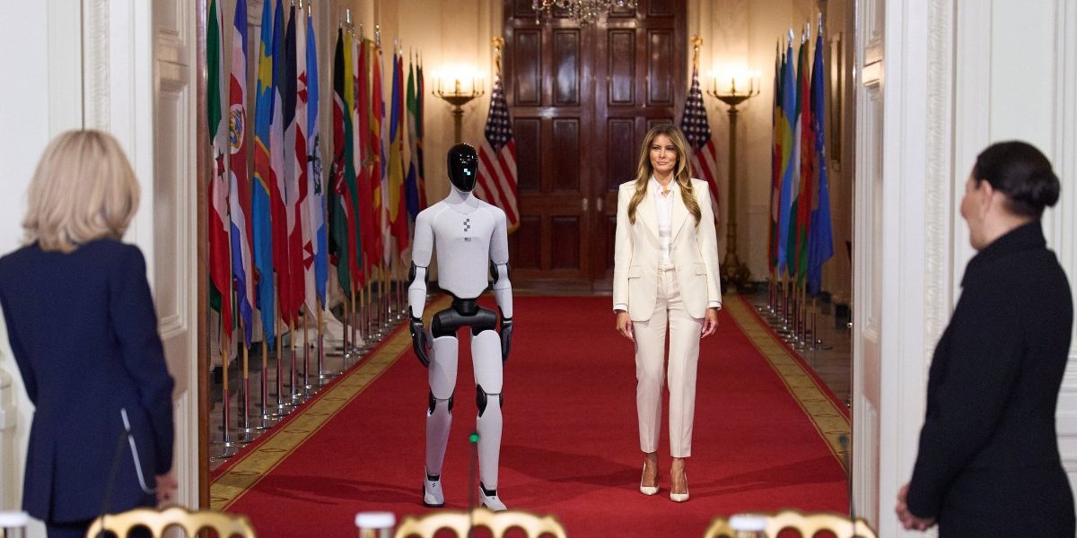 „Ви благодарам, прва дамо Меланија Трамп, што ме поканивте во Белата куќа. Чест ми е да бидам на инаугуралниот состанок на глобалната коалиција ’Заедничко негување на иднината‘“, изјави „Figure 03“, кој за себе вели дека е „хуманоид направен за САД“.