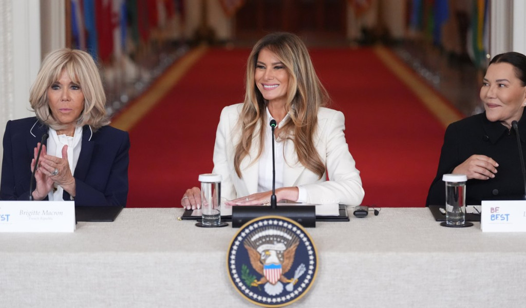 Меланија Трамп и хуманоидот бавно одеа еден покрај друг по црвениот тепих. Првата дама застана непосредно пред влезот во Источната соба, додека роботот ја обиколи масата со панелистите и зазеде позиција во центарот на просторијата.