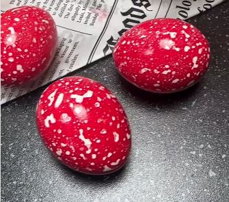 Нејзиното видео прикажува метод за бојадисување јајца што дава спектакуларен мермерен ефект, а за него се потребни само три состојки што повеќето веќе ги имаат во својата кујна: