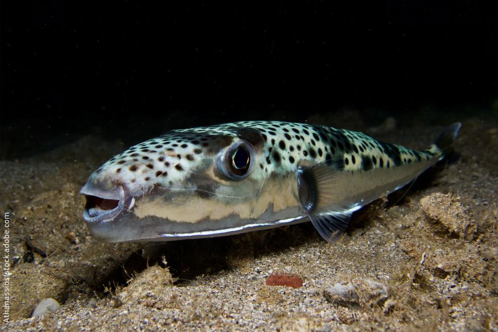 Сребренопругава надуена риба (Lagocephalus sceleratus): можеби најпознатиот инвазивен организам, оваа многу отровна риба содржи смртоносен невротоксин (TTX). Таа стана голем проблем за грчките рибари, бидејќи не е за јадење и често ги уништува мрежите со своите силни заби налик на клун.