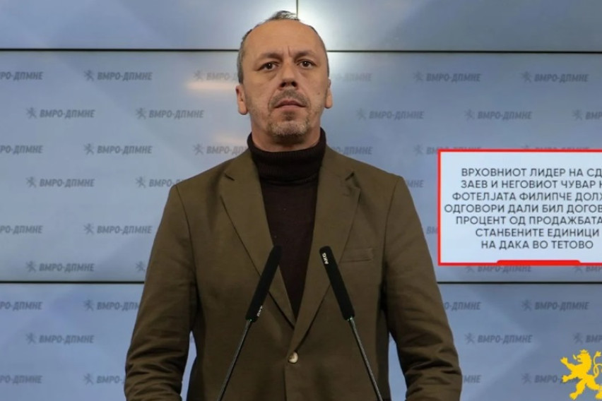 Врховниот лидер на СДС, Заев и неговиот чувар на фотелјата Филипче должат одговори дали бил договорен процент од продажбата на станбените единици на „Дака“ во Тетово, рече денес на прес-конференција пратеникот Бране Петрушевски.
