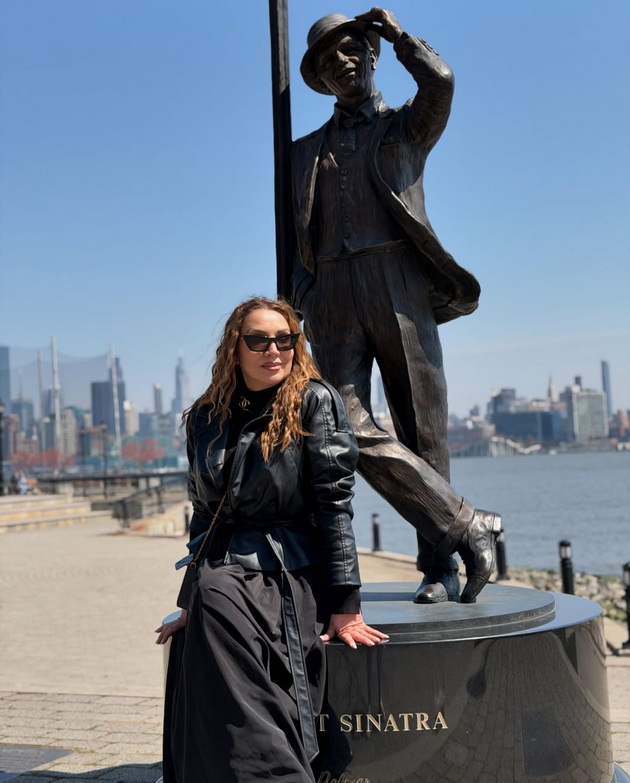 Паркот Синатра изграден во чест на легендарниот пејач е место кое мора да се посети и не пропуштив прилика да се сликам со неговата бронзена статуа. Животот е убав“, напиша таа во својата прва објава.