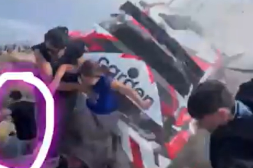 На интернет се појавија драматични снимки на кои може да се види како гледачите панично се тргаат во моментите кога автомобилот излетува од патеката. На снимката исто така се гледа како мајка со молскавична реакција го спасува животот на својата ќерка, оттурнувајќи ја настрана пред неконтролираното возило.