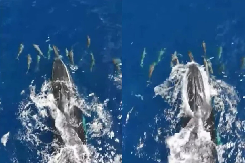 Имено, претприемачот Ричард Бренсон на својот профил на Инстаграм споделил видеоснимка на која се прикажани делфини и китови како заедно си играат и пливаат во океанот, непосредно покрај островот Некер.
