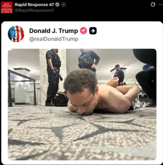 Тој човек додека беше на подот изгледаше прилично злобно – посочи Трамп објавувајќи фотографија од неговото апсење.