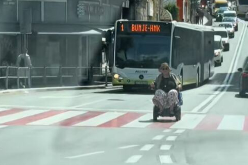 Вирално видео од Сплит прикажува постара жена која се движи со електрична количка по средината на прометна улица, предизвикувајќи бројни духовити реакции на социјалните мрежи.